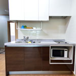 주방 : 냉장고, 전자레인지, 커피포트, 인덕션, 쿠쿠 밥솥, 도마, 쟁반, 주방세제, 조리도구 일체(냄비, 후라이펜, 식기, 수저, 커피잔, 칼, 가위, 집게 등)